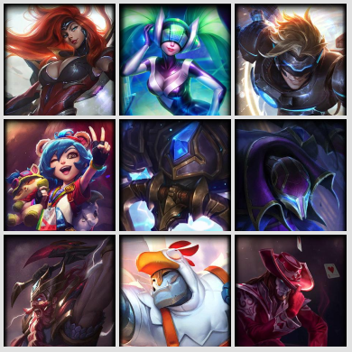sk8-龙瞎-黑夜亚索-武装战姬-海克斯牛头梦魇-丧尸火男-披萨希维尔-花木兰-skt等