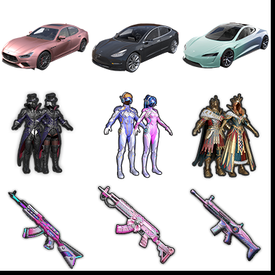 14粉装★8粉枪★9载具★17粉色战备★172枪械★古堡领主★梦幻火箭★华贵君王★蝶舞迷情★甜蜜誓约★潮汐统领★金...
