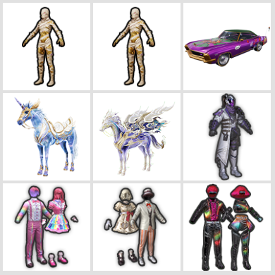 适配系统:苹果 分销起租时长:1 账号类型(腾讯):QQ 粉色时装数:18 载具皮肤:3 特效枪数量:26 套装数量:382 枪皮数量:491