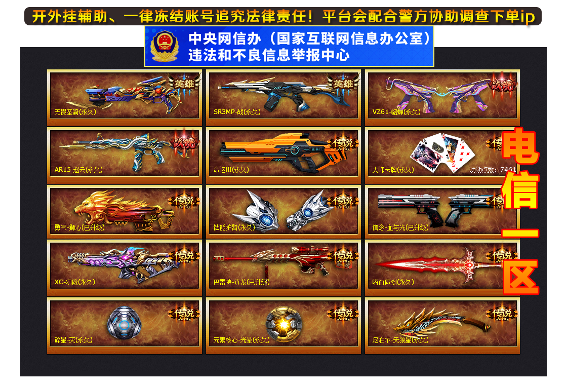 友情提醒:不得使用外挂等第三方软件,违反将会扣除押金或者系统强制退出游戏!