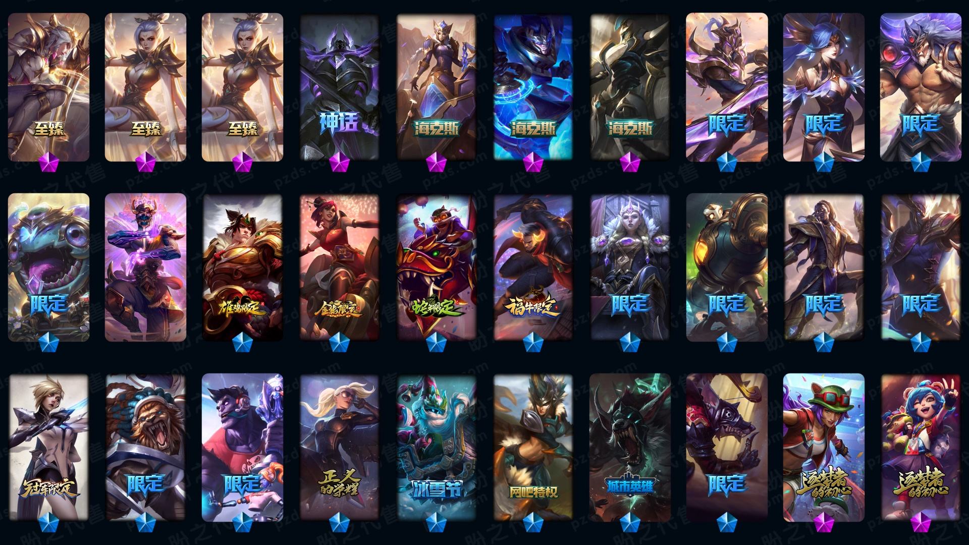 1637皮肤〓可排位妹子号白银〓全英雄〓32神话〓24臻彩〓379炫彩〓海克斯至臻人马女帝锐雯皇子〓暗裔英雄IG剑...