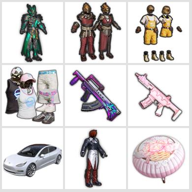 1辆白色特斯拉 355服装 80个枪皮 59个装备皮肤