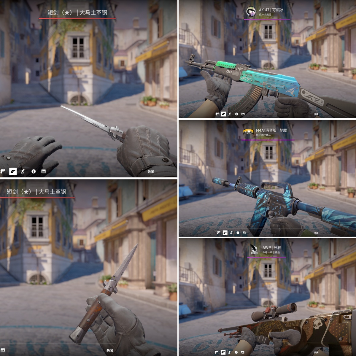 可完美★(A19-)★短剑大马士革钢★AWP暴怒野兽★印花集沙漠之鹰★AK夜愿★禁止官匹★A1梦魇★A4活色生香