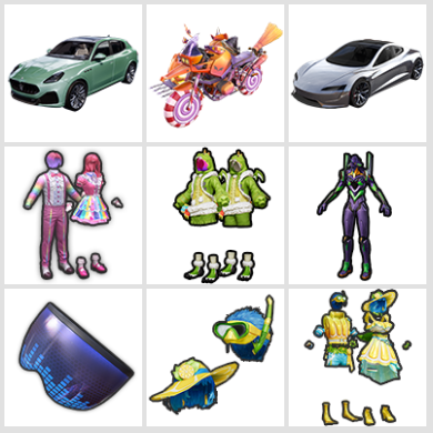 G36★5粉★5特★3载具★战神框★螳螂★梦幻火箭★铂金特斯拉★