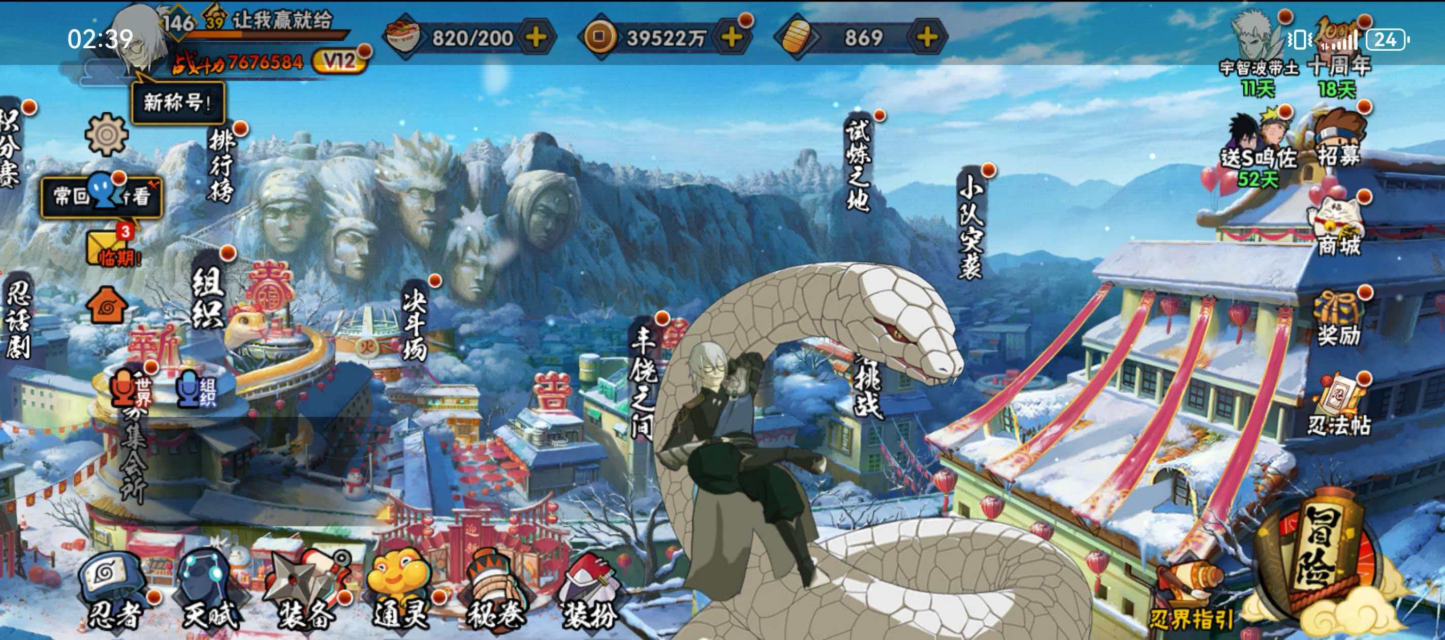 适配系统:安卓 账号类型(腾讯):QQ 分销起租时长:1 战力值:675361 A级忍者数:54 S级忍者数:19