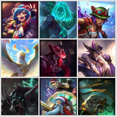 酒桶200皮神话★哥特萝莉十周年纪念★冠军之刃瑞文★狗年限定★蛇年限定★胜利女神莫甘娜★SKT T1★史诗★泳池派...