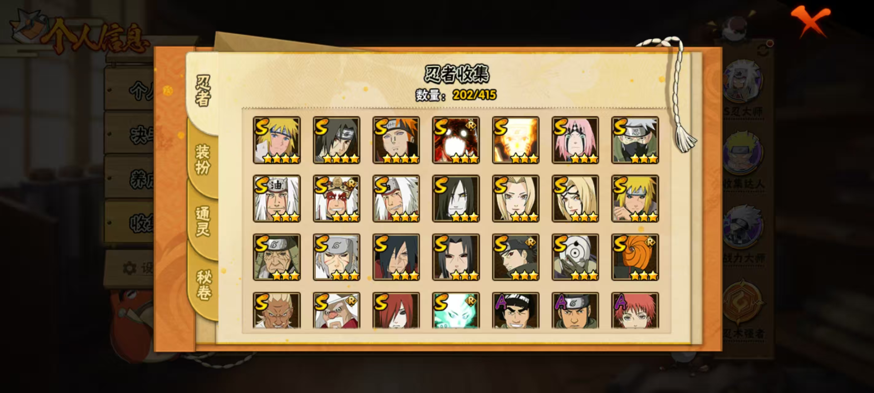 适配系统:安卓 账号类型(腾讯):QQ 战力值:1600 A级忍者数:48 分销起租时长:1 S级忍者数:25