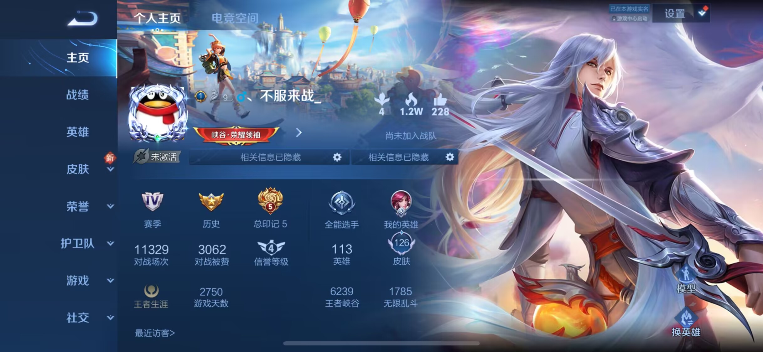 适配系统:苹果 角色名:就你长着个嘴 信誉分:100 账号类型(腾讯):QQ 排位赛:允许 巅峰赛:允许 段位:非凡王者 英雄数量:127 皮肤数量:187 VIP等级:0 禁言/不能加好友:否 营地ID:361134714 出租次数限制:2 分销起租时长:1 维权率限制:21