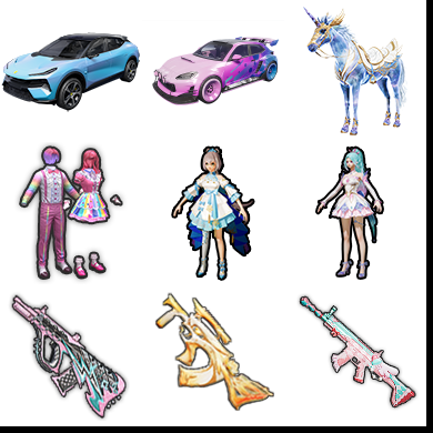红装 精灵之光3级/洛天依/幻彩电音/Scar锦绣5级/GROZA精灵3级/MG3突变脉冲7级/仰望u9。