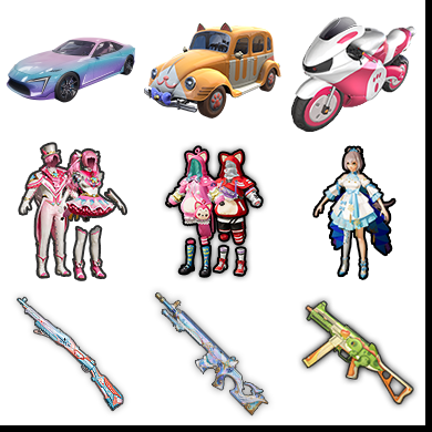 SY576@4载具6粉5特效/男号套装号-白色特斯拉-极速兔兔车-风幻水镜-洛天依-馨动时刻-六号稻草人-小黄鸭-...