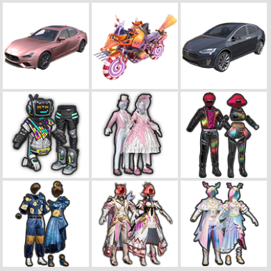 SY303@3载具10粉装9特效枪/Daxia轿车-UAZ吉普车-3人摩托车/炫紫旋律/心之恋语/快乐主宰/甜蜜誓...