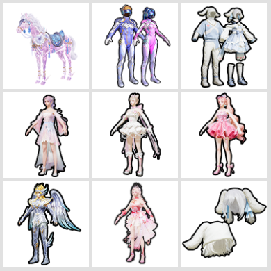 SY332@1红7粉10特效1车1马/暮色玫影艾丽娅-7级m4风花雪月-5级ak暮色玫影-晶梦灵驹-粉色布加迪威龙