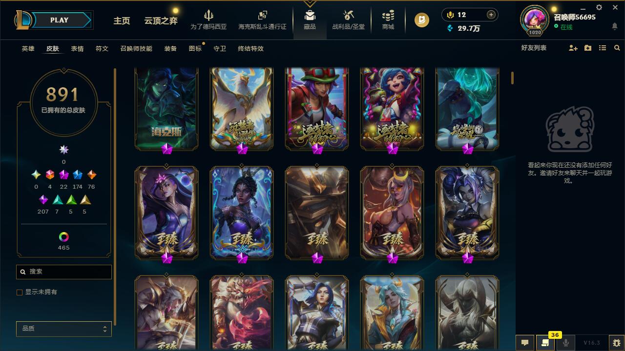 角色等级:1036 角色名:召唤师56695 排位赛:允许 单双排段位:璀璨钻石II 灵活组排段位:璀璨钻石III 英雄数量:172 皮肤数量:897 双人作战段位:无段位 分销起租时长:2
