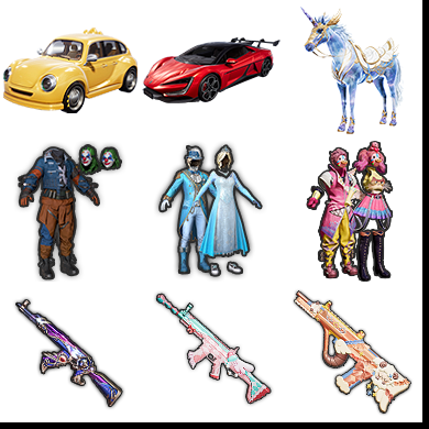 红装木乃伊️雪国幻梦️怪诞乔克️赤蝎幽灵️都市猎人️金鞋️巡查衣️萌神柯基️夏日倾情️12吧特效枪️6个载具