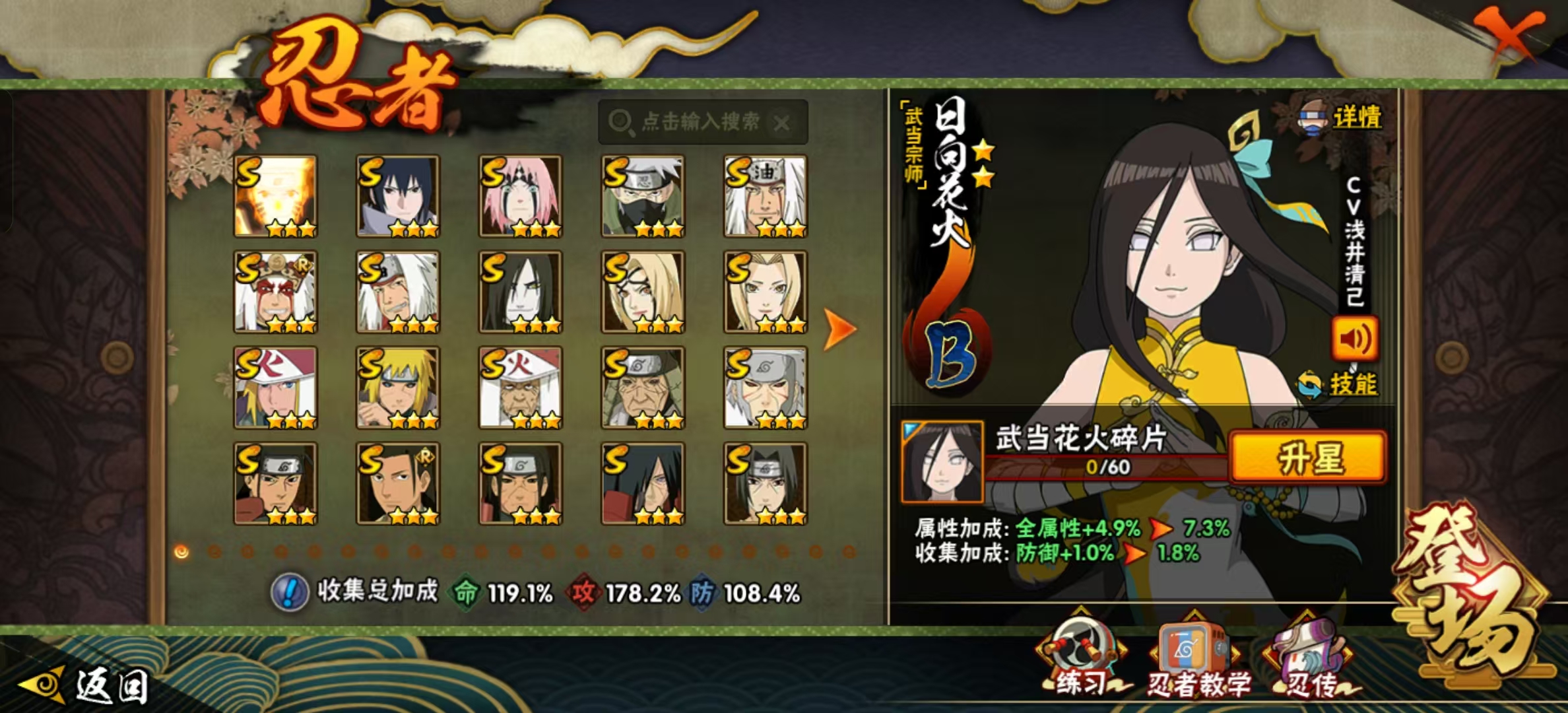 适配系统:安卓 账号类型(腾讯):QQ 分销起租时长:1 战力值:1579W A级忍者数:46 S级忍者数:29