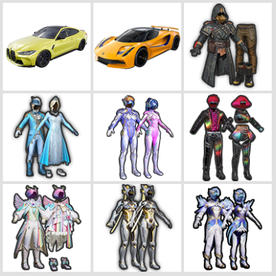 3极木乃伊,AK9极特效枪,雪国幻梦,觉醒螳螂,发光眼罩,绚金战神,都市猎人,金鞋,赤蝎幽灵,天网终结者,追光队服...