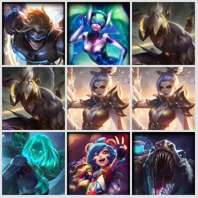 J524,662皮肤,DJ琴女,盲僧至臻,诺手两周年限定,艾维尼亚庆典女皇,替父从军,龙瞎子