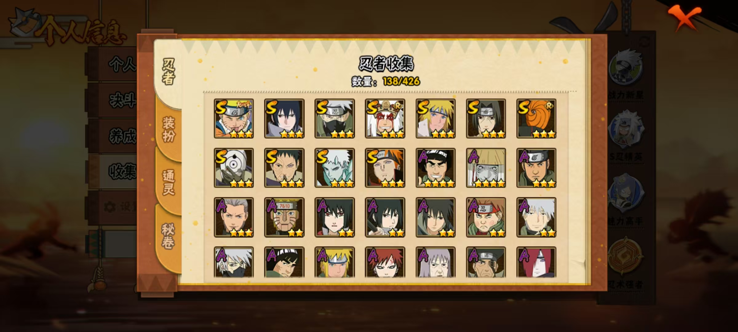 适配系统:安卓 账号类型(腾讯):QQ 战力值:500W 分销起租时长:1 A级忍者数:27 S级忍者数:12