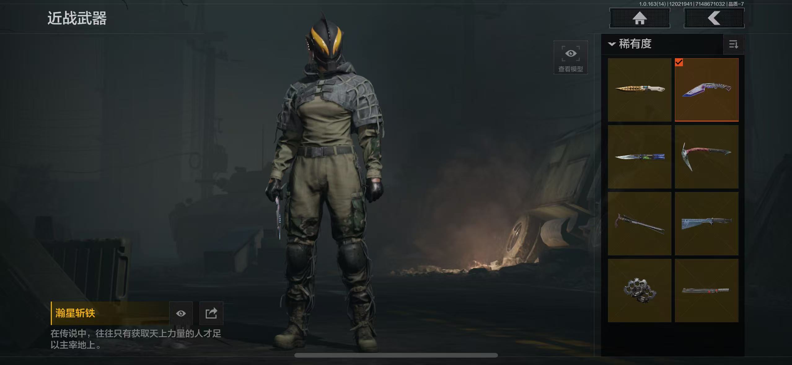破产号8刀5衣赢家匕首 瀚星斩铁 涂鸦利刃 冬日冰镐 裁决手杖 霜狼生存刀 精英指虎 来战开山刀 噤声者吉利服 ...