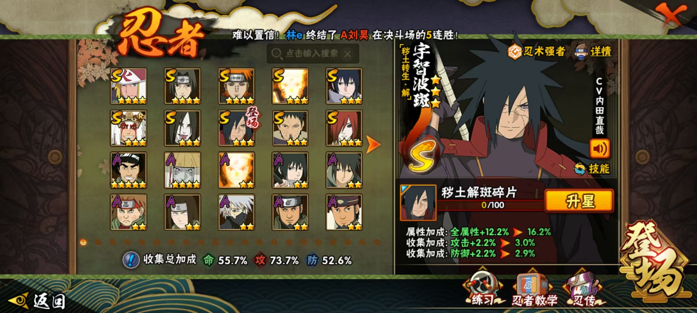 适配系统:安卓 账号类型(腾讯):QQ 战力值:660W A忍者数量:25 S级忍者数:10