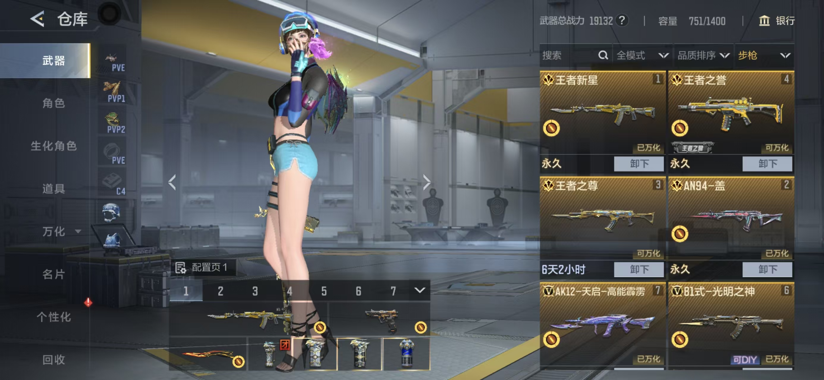 英雄武器数:100 王者武器数:3 段位:枪王 VIP等级:V6 角色数量:9 分销起租时长:1 适配系统:安卓 账号类型(腾讯):QQ