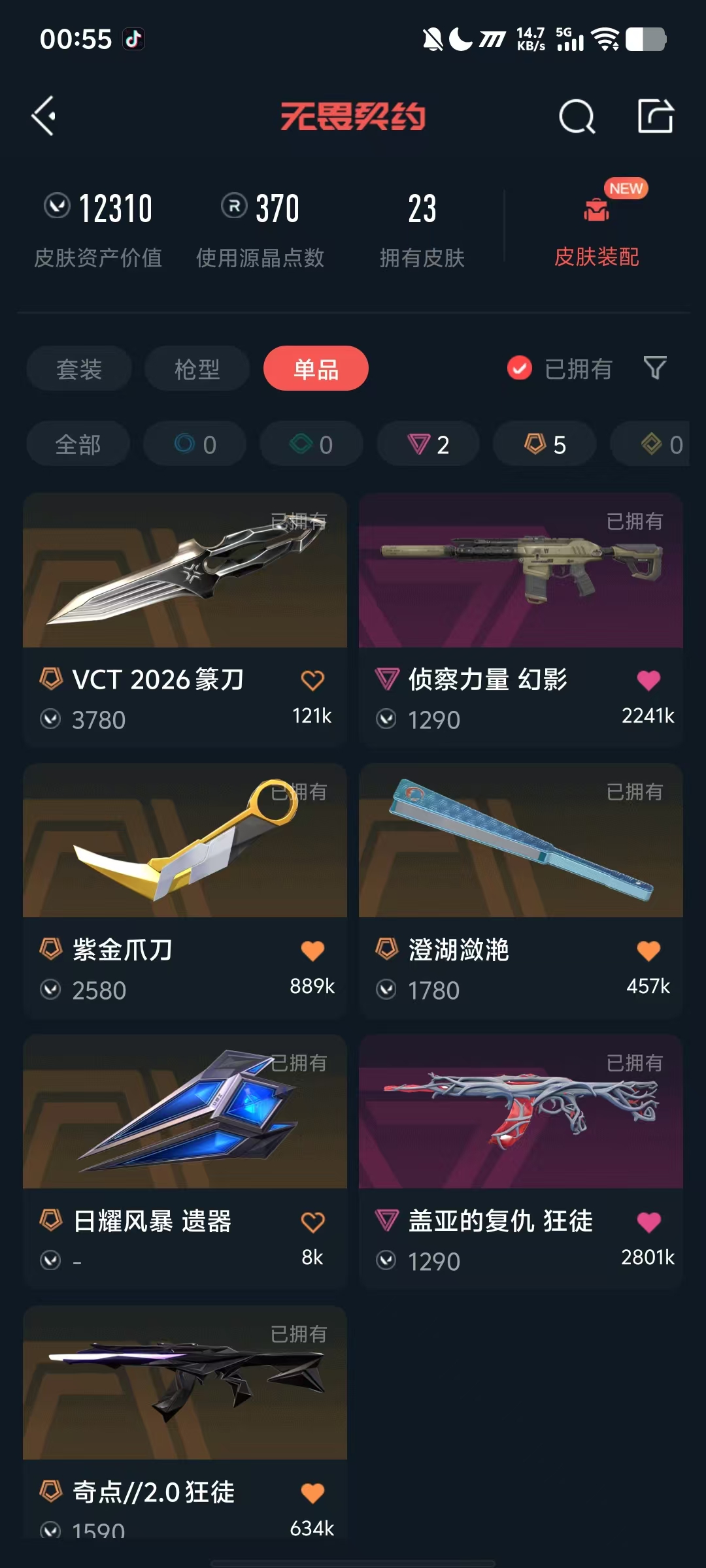 SS233★1W库存-5橙色-VCT 2026篆刀-奇点//2.0狂徒-紫金爪刀-日耀风暴遗器-澄湖潋滟★等
