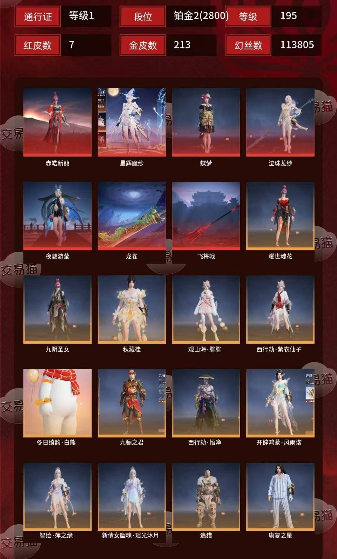 红品数量:7 三排段位:铂金 金品数量:213 单排段位:无段位 分销起租时长:1 双排段位:无段位 分销折扣价:无折扣