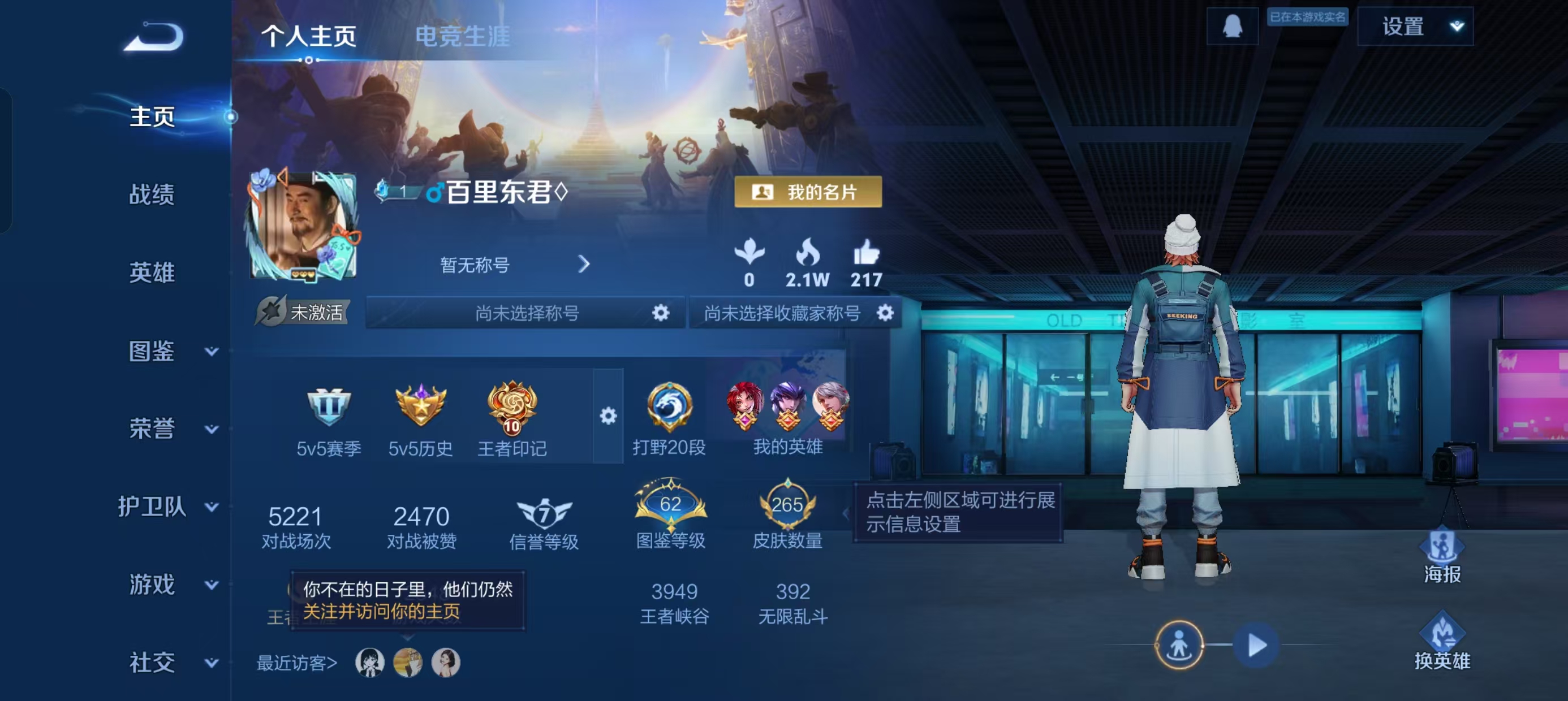 适配系统:安卓 角色名:百里东君♢ 信誉分:100 账号类型(腾讯):QQ 排位赛:允许 巅峰赛:允许 段位:永恒钻石V 英雄数量:126 皮肤数量:264 分销起租时长:2 VIP等级:4 禁言/不能加好友:否