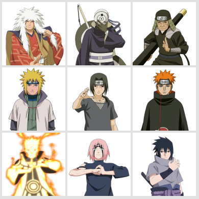 从春野樱到九喇嘛水门。白面具,老三代,大筒木舍人,大筒木桃式,止水须佐能乎,五影斑,六尾鸣人