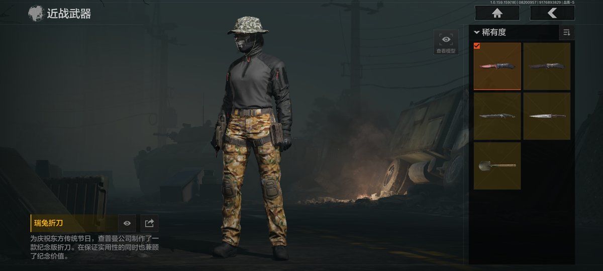 5刀8皮1金枪,瑞兔折刀,野战折刀,鲨鱼刀,突击匕首,,旗帜AEK,都市夜影套装,