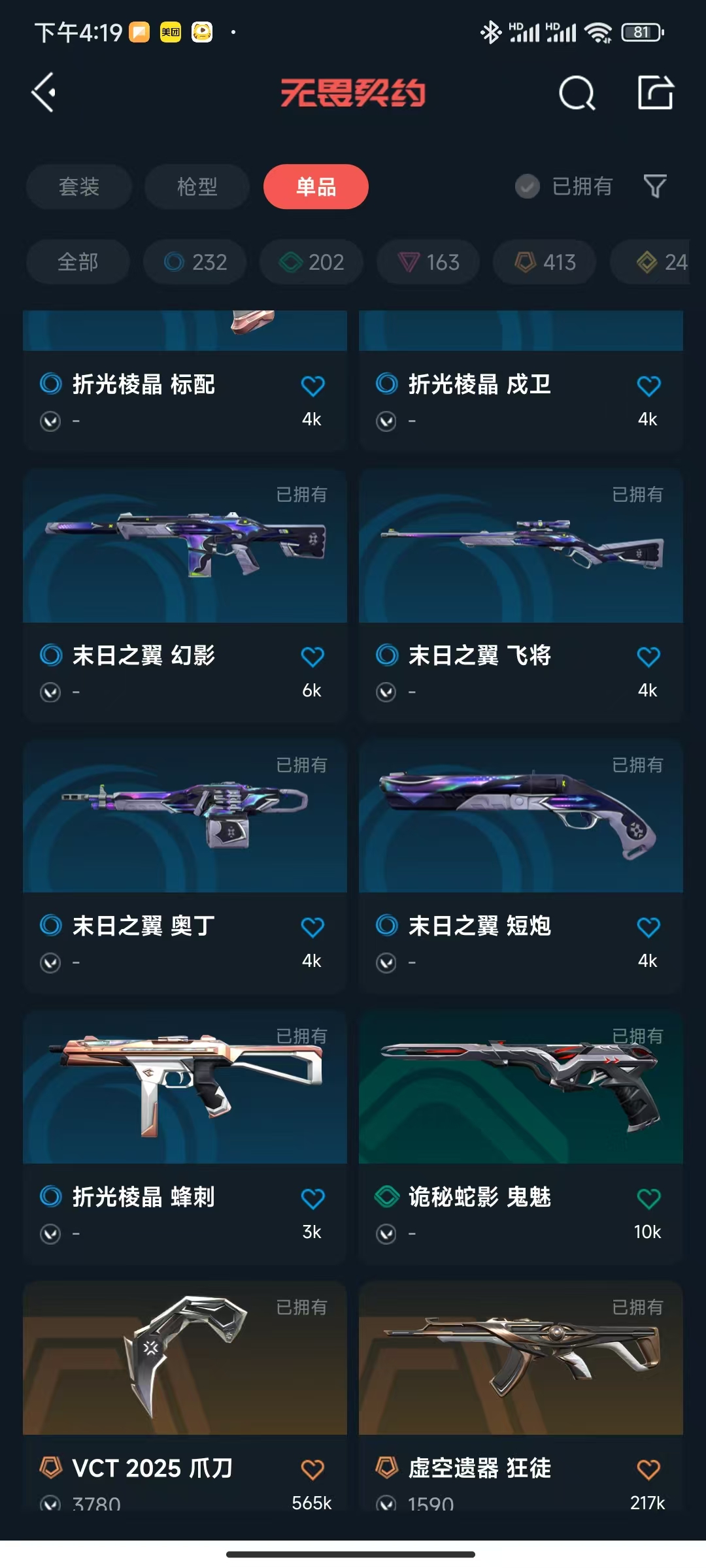 SX408@1w7库存*显卡ak*vct标配*vct爪刀*雷切*超时空鬼魅*混沌ak*781协议幻影*虚空遗器ak
