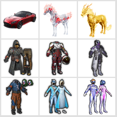 SX483@10粉 11特效 3车 2红 /男号套装号一2级沙丘之主-两级暮色玫瑰-龙外套-都市猎人-冰雪-怪诞乔...