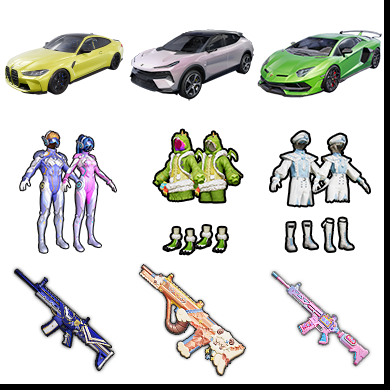 S50丨8粉装9粉枪5车9稀有紫装丨兰博基尼路特斯宝马m4海龙双人摩托梦幻火箭丨圣域金龙飞行器和圣域龙灵降落伞丨1...