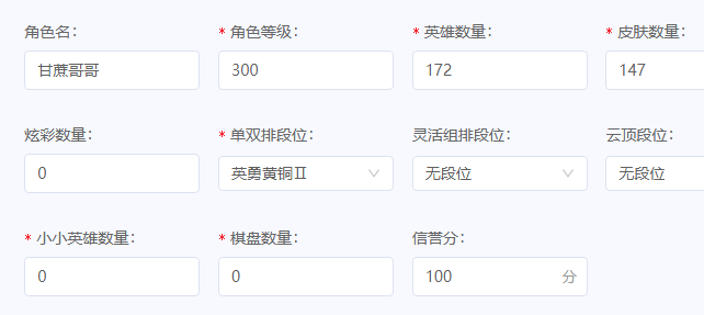 角色等级:405 角色名:甘蔗哥哥 排位赛:允许 单双排段位:华贵铂金IV 灵活组排段位:荣耀黄金I 英雄数量:172 皮肤数量:153 分销起租时长:1 云顶段位:无段位 双人作战段位:无段位