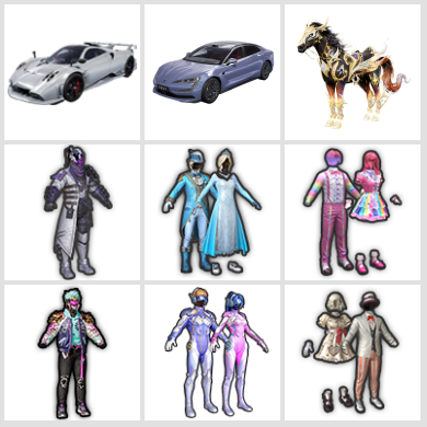 适配系统:安卓 粉色时装数:28 特效枪数量:34 账号类型(腾讯):QQ 载具皮肤:3 套装数量:292 分销起租时长:3 枪皮数量:474