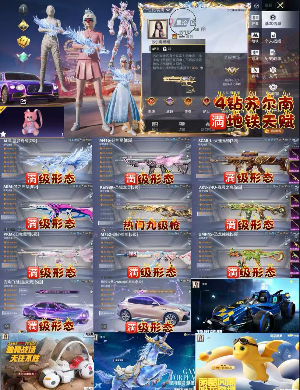 24.满级星梦满级超新星4钻苏尔南.老101.木乃伊.5级宾利5级玛莎冰雪小丑