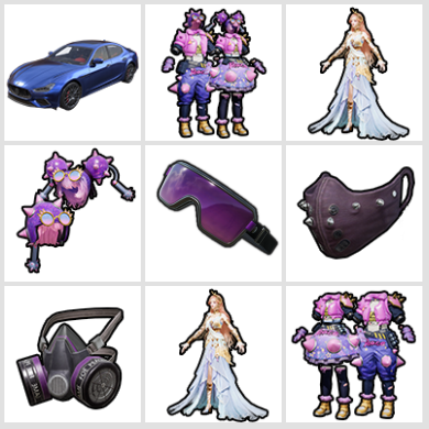 B21丨2粉流星咚咚智耀战神丨1车玛莎蓝丨4枪暖羊akm绿萝如意影豹丨5稀有骑兵面罩都市雪山时希公主丨9粉降落伞