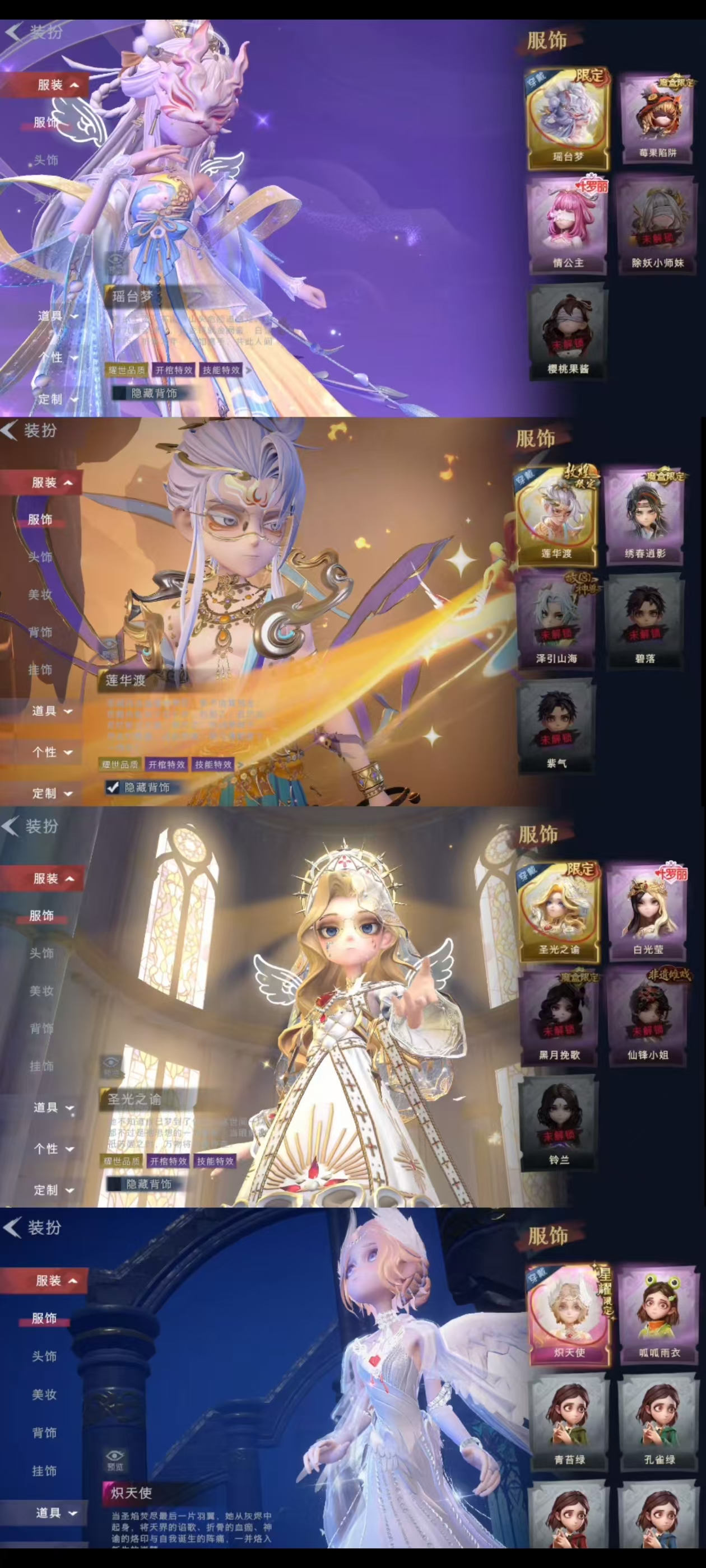 1星耀4耀世12紫39道具炽天使莲华渡瑶台梦圣光之谕镜花辞露比套 绮梦花园全套搬开山黎明猎手绣春逍影