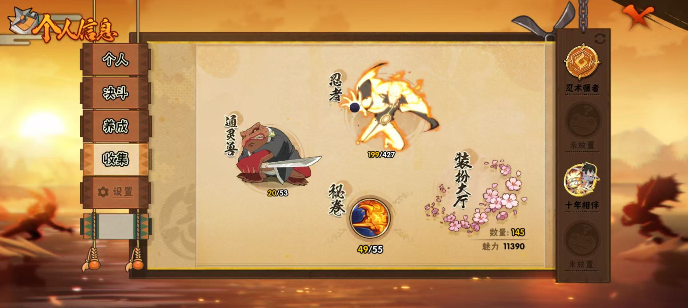 适配系统:安卓 账号类型(腾讯):QQ 分销起租时长:1 战力值:1227W A忍者数量:44 S级忍者数:21