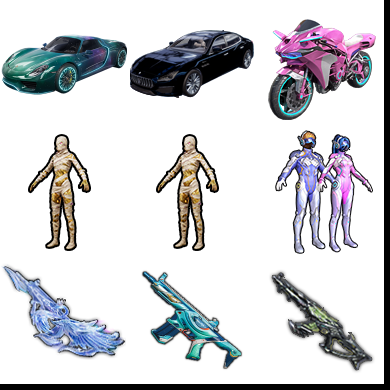 素材号●7级星梦AUG●1红14粉15特8车●6级墨龙九天●图卡盟、都市、101、螳螂、2级保时捷