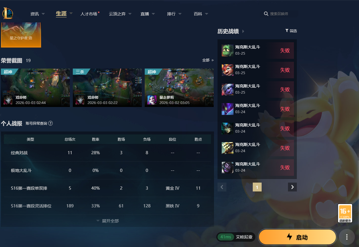艾欧尼亚冰淇凌94黑/铁灵活负胜率/打野战士英雄号/海斗负胜率/