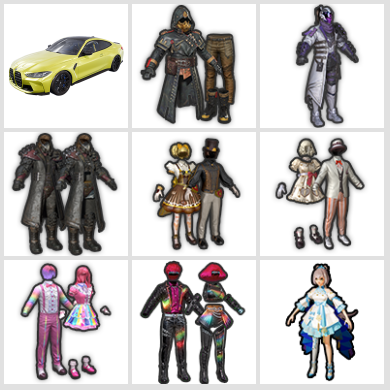 13粉装,13特效,1载具,宝马m4、洛天依、甜心巧克力,都市猎人、千金淑猫、放客神游、幻影战神、深海小丑鱼、奇异...