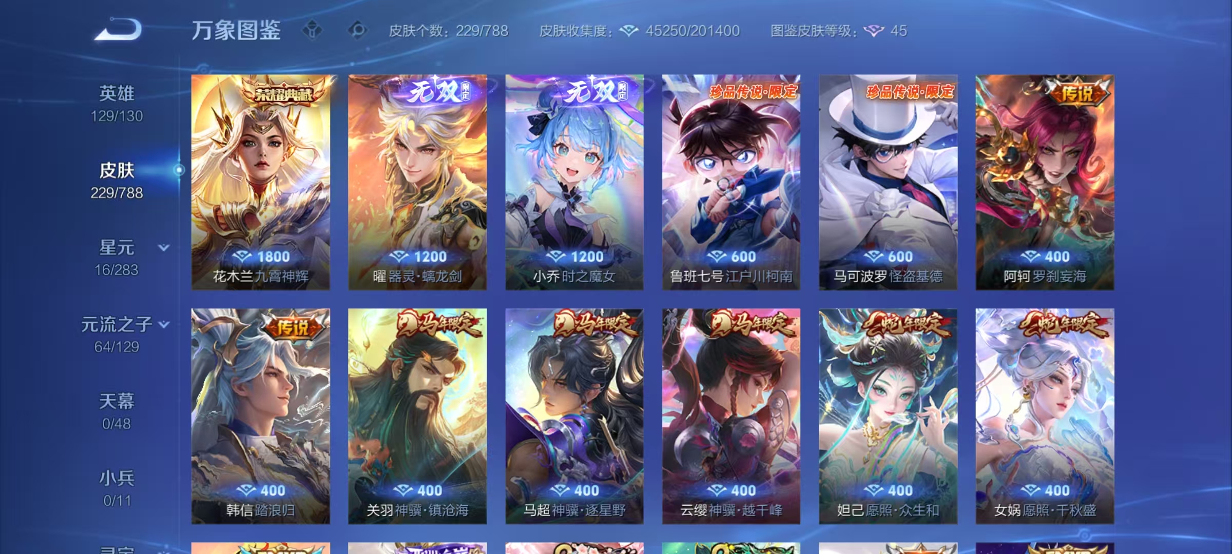 V8,229皮肤,九霄神辉,螭龙剑,时之预言,白虎志,柯南,基德,神威,炽阳神光,绯月行,无双飞将