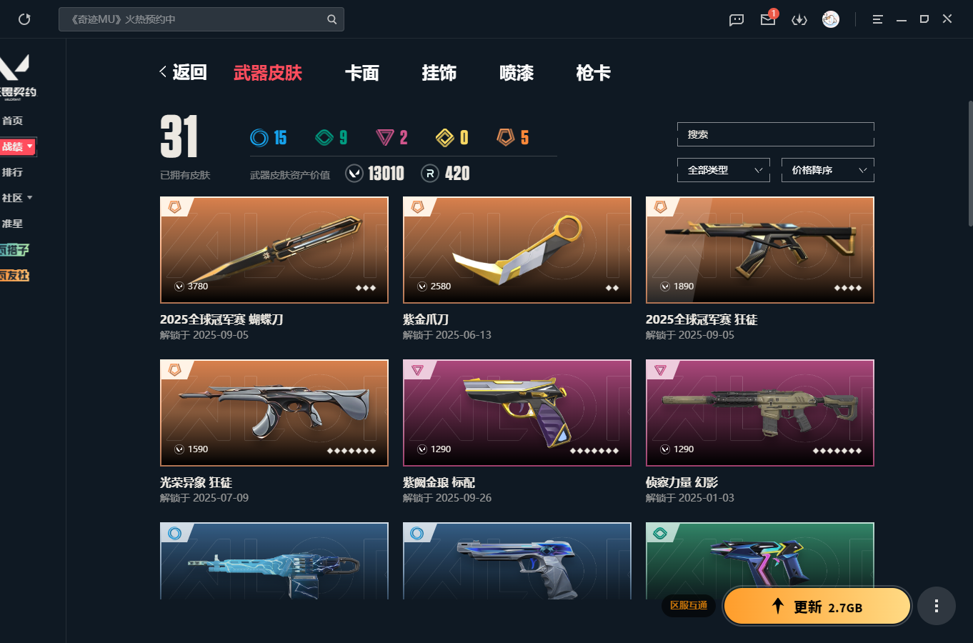 段位:铂金 终极数量:5 传奇数量:0 卓越数量:2 分销折扣价:5折 分销起租时长:1 排位赛:可排位 英雄数量:25 在线解冻结时间:9:00至24:00 到时不下线:是 武器皮肤数量:31