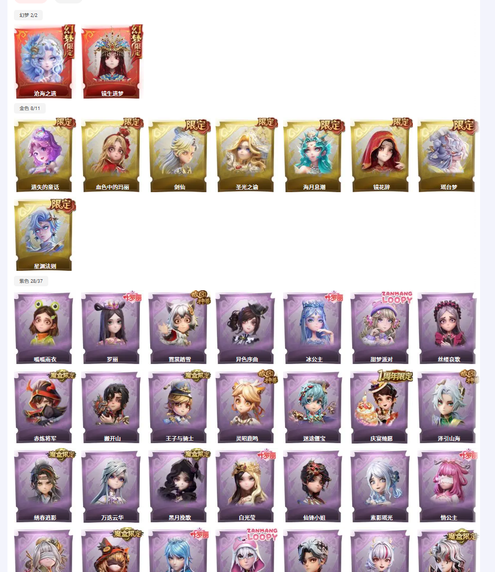 金色皮肤:8 紫色皮肤:28 是否有兔宝:是 道具皮肤:99