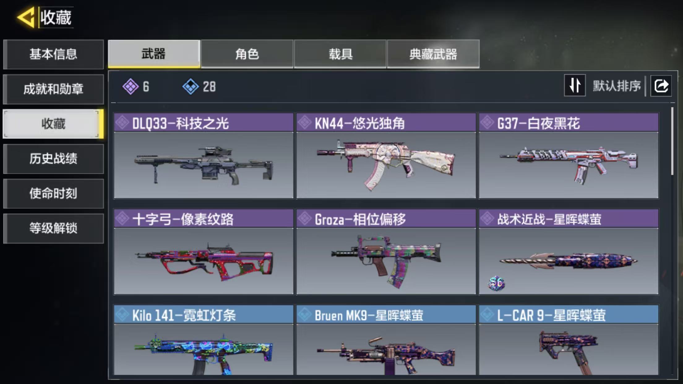 43级6史诗武器1史诗载具坦克-燃烧年代、DL033-科技之光、KN44-悠光独角、G37-白夜黑花、十字弓-像素...
