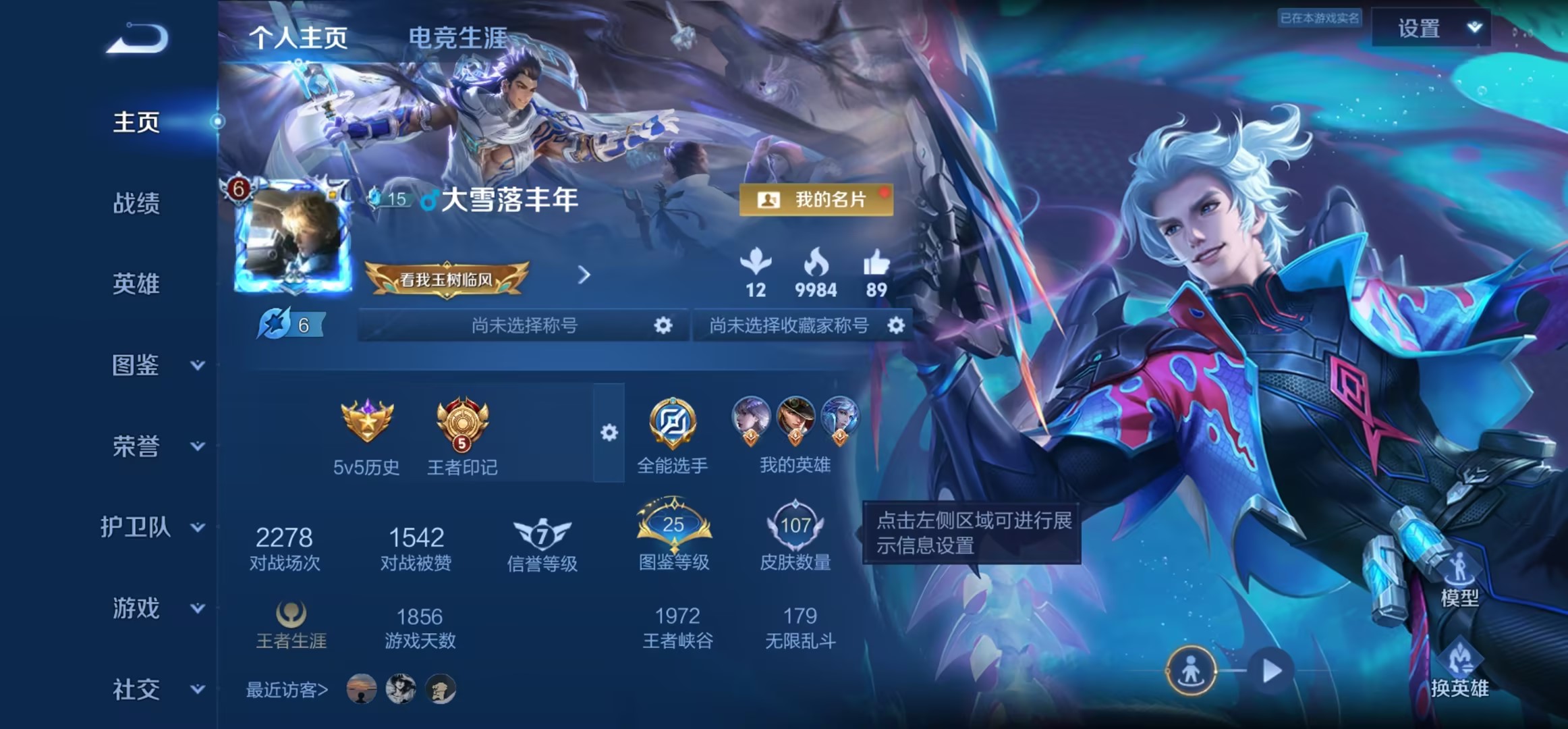 适配系统:安卓 角色名:大雪落丰年 信誉分:100 账号类型(腾讯):QQ 排位赛:允许 段位:至尊星耀 巅峰赛:允许 英雄数量:125 皮肤数量:107 分销起租时长:1 VIP等级:5 禁言/不能加好友:否