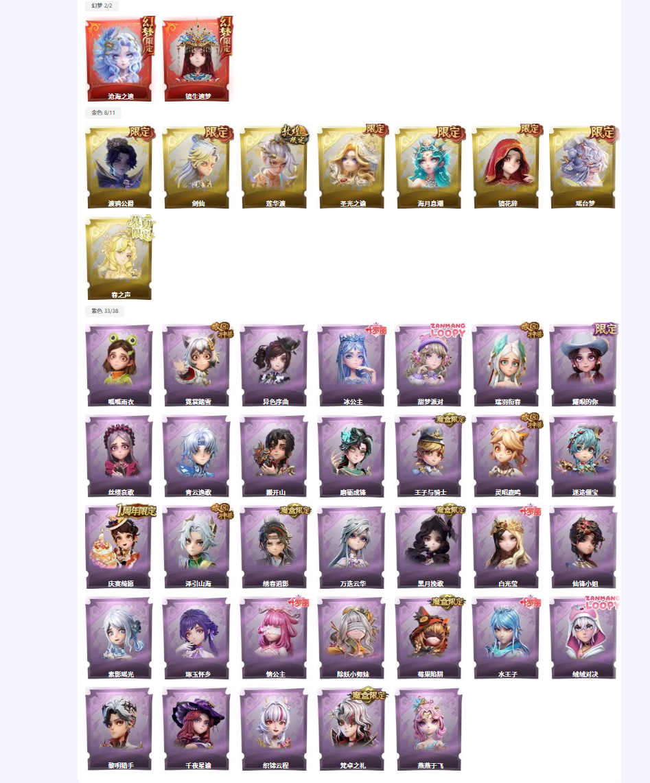 金色皮肤:8 紫色皮肤:33 是否有兔宝:是